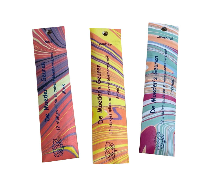 The sticks are rolled by hand and all packaging is marbled by hand. This ensures that each packaging is unique. Each pack has 12 sticks of 12 centimeters.