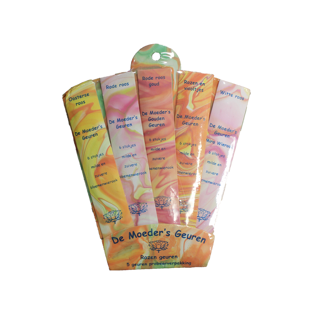 The hand-rolled pure Incense Rose Fragrances come from the series of the well-known brand De Moeder’s Geuren. The fan contains 5 packs of 4 sticks each and has a soothing and relaxing effect. Every incense scent has its own effect and application, so read carefully which experience and scent complements you!