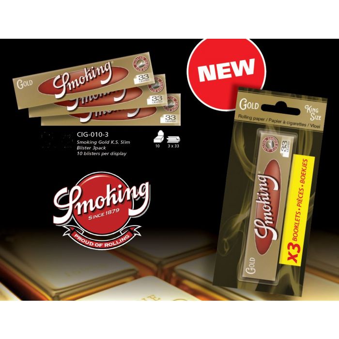 Looking for rolling papers? The Smoking Gold Slim rolling papers are 110 mm long and 44 mm wide. When purchasing 1x Smoking Gold you will receive 3 packs or 33 rolling papers per pack.